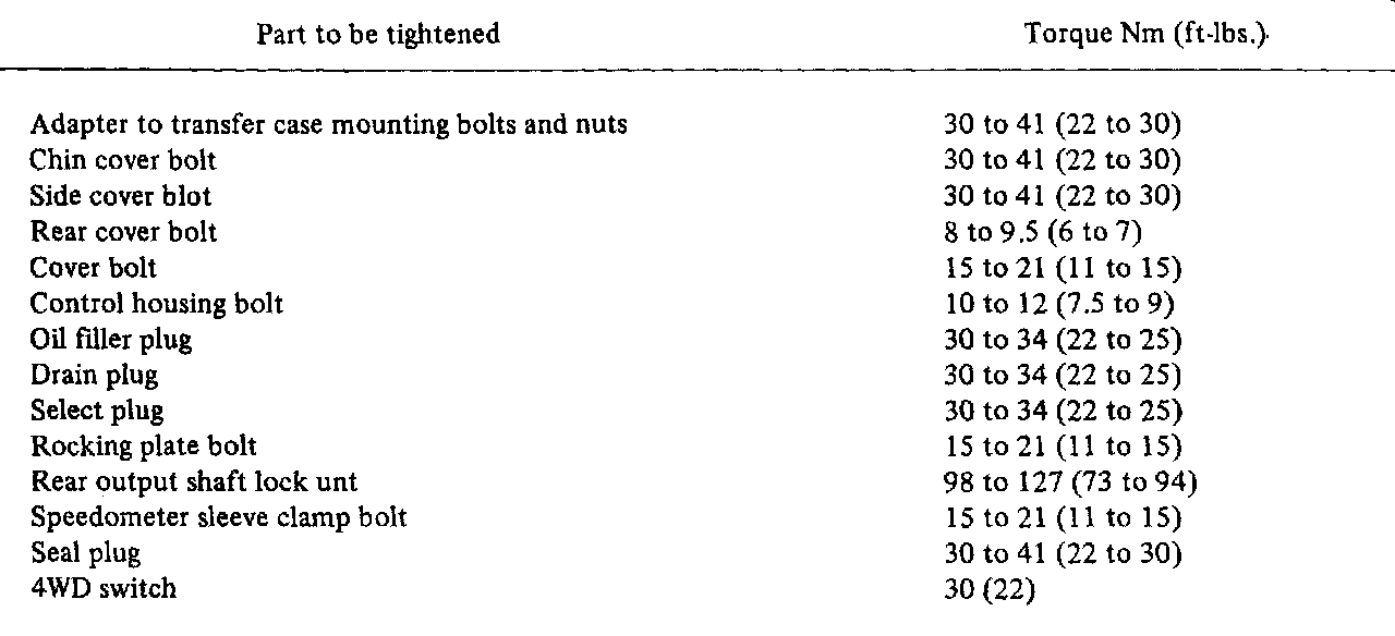 Torque Specifications