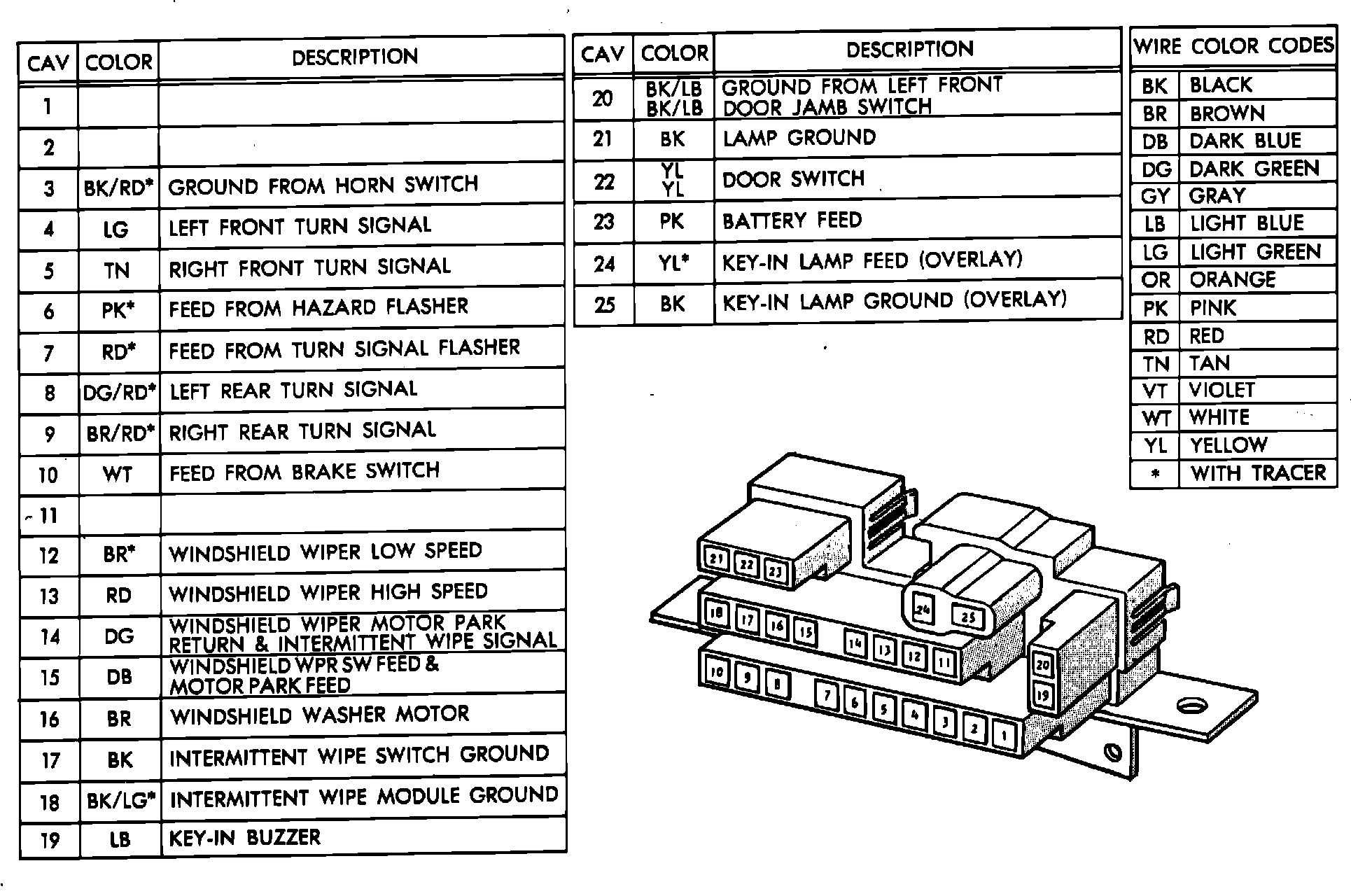Fig. 13 Steering Column Connector (25 Way). 1983-84: