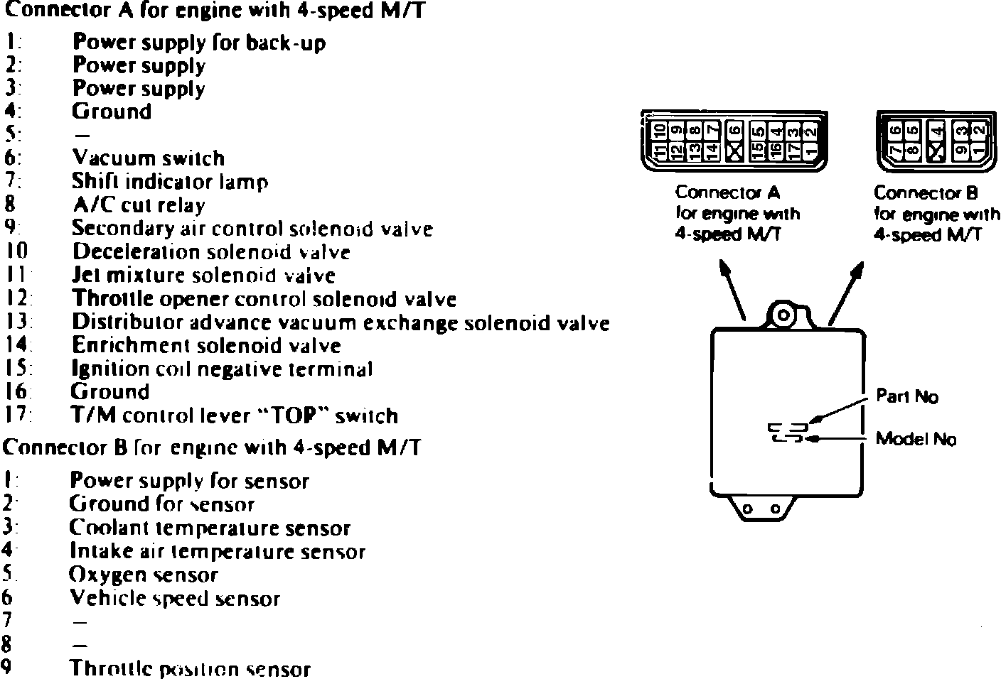 Carburetor control unit terminal location. 1985 Colt w/4 speed man. trans.:
