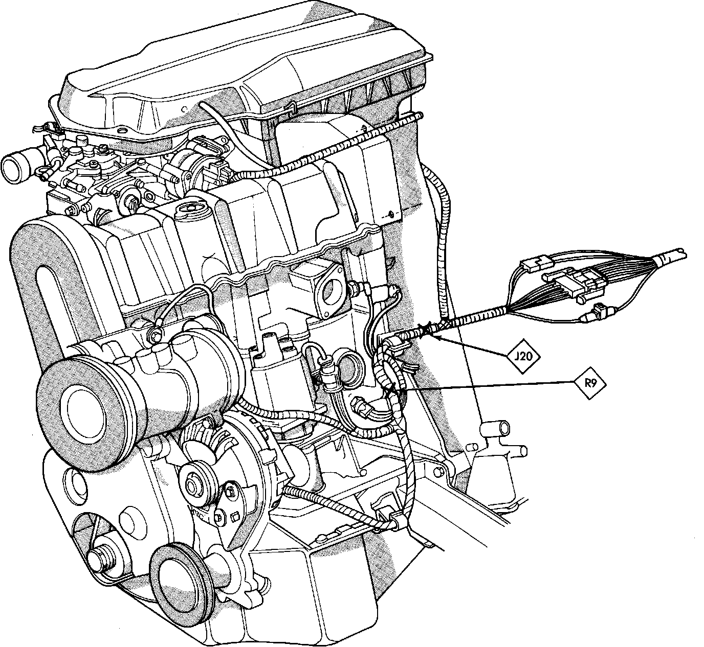 Fig. 45 Splice Location (Engine). 1985 W/2.2 Litre Engine, Less Turbo:
