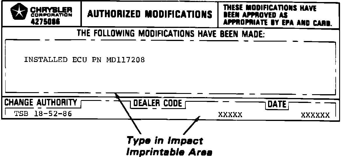 Attach Authorized Modification Label, PN 4275086, as illustrated below.