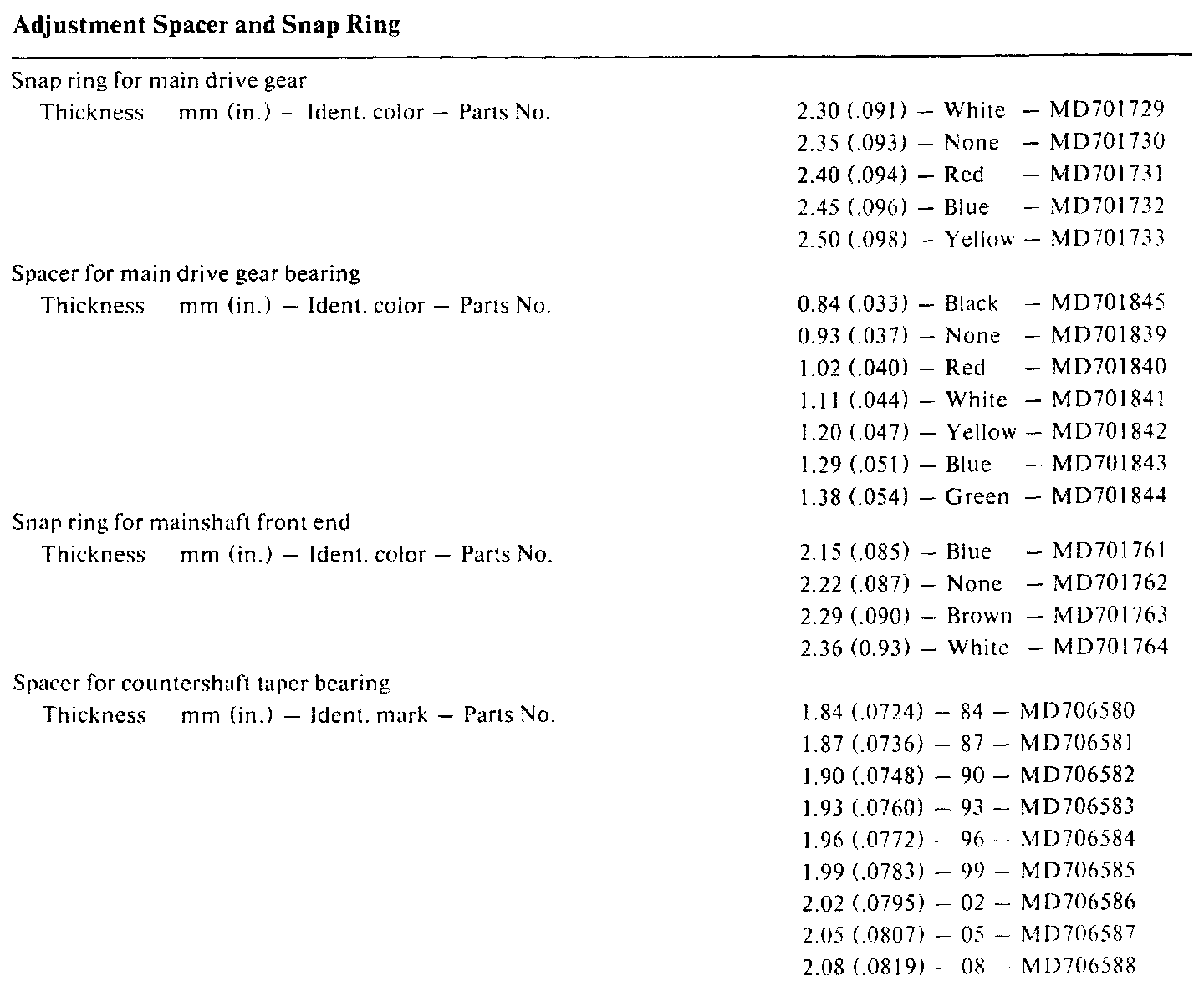 Adjustment Spacers And Snap Rings:
