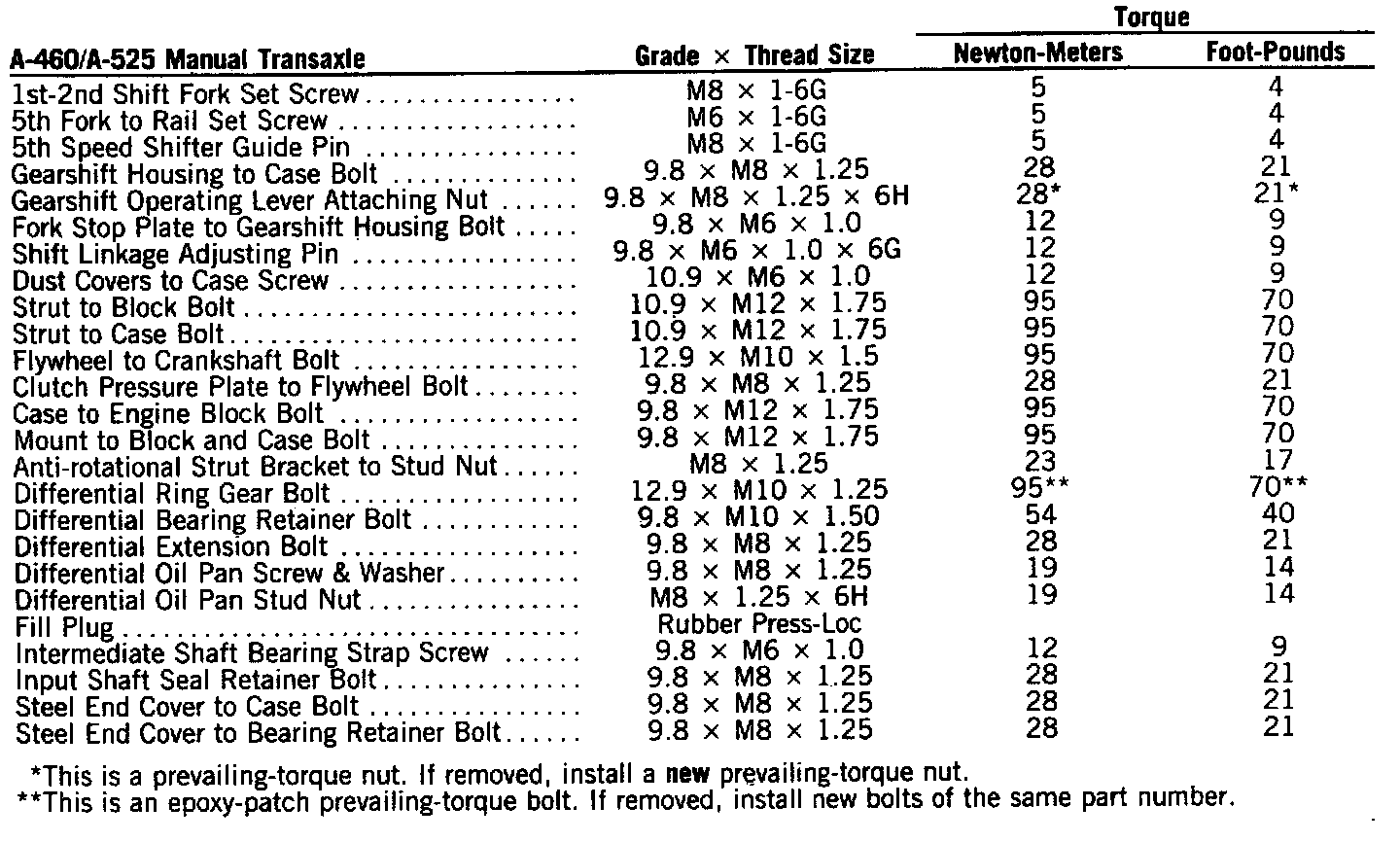 Torque Specifications: