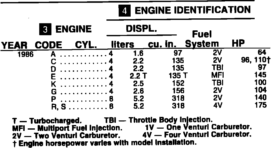 ENGINE IDENTIFICATION 1986: