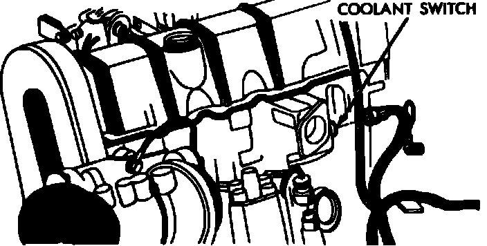 On four cylinder engines the coolant switch is located on the thermostat housing. Fig. 2, It supplies a signal to the computer when the engine coolant temperature is below 150° F. This information is required to prevent a change in air fuel ratio until engine operating temperature is reached.