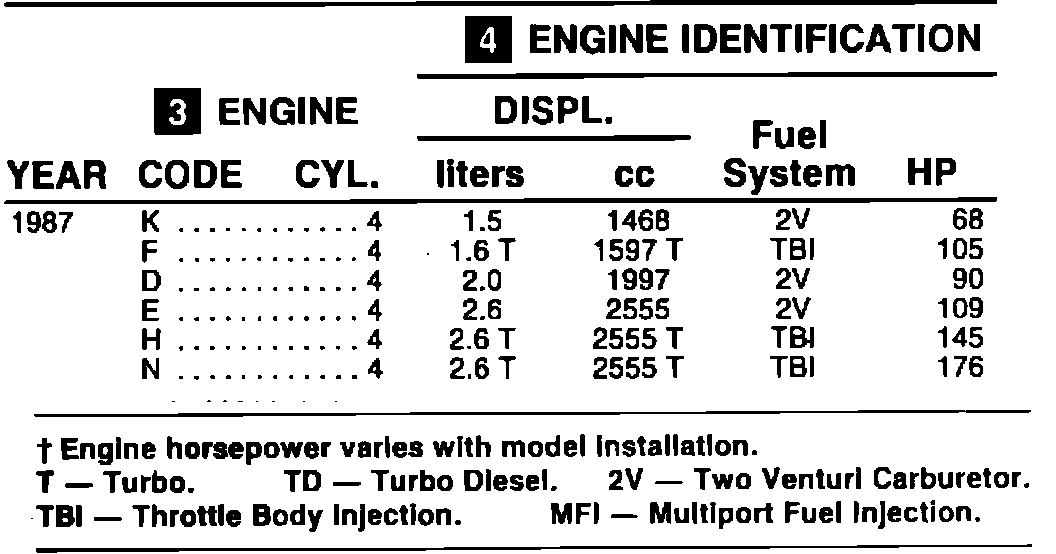 2 ENGINE CODE LOCATION: 8th character of V.I.N.