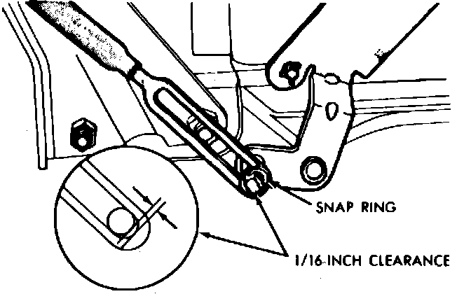 2. Remove snap ring, then check clearance between throttle stud and cable clevis.