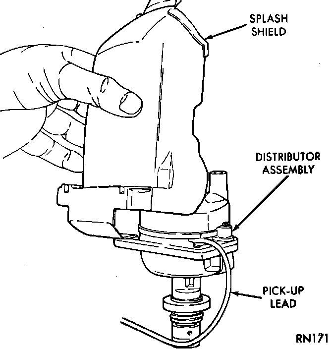(1) Position distributor in engine. Make certain that the O-ring is properly seated on distributor. If O-ring is cracked or nicked replace with new one.