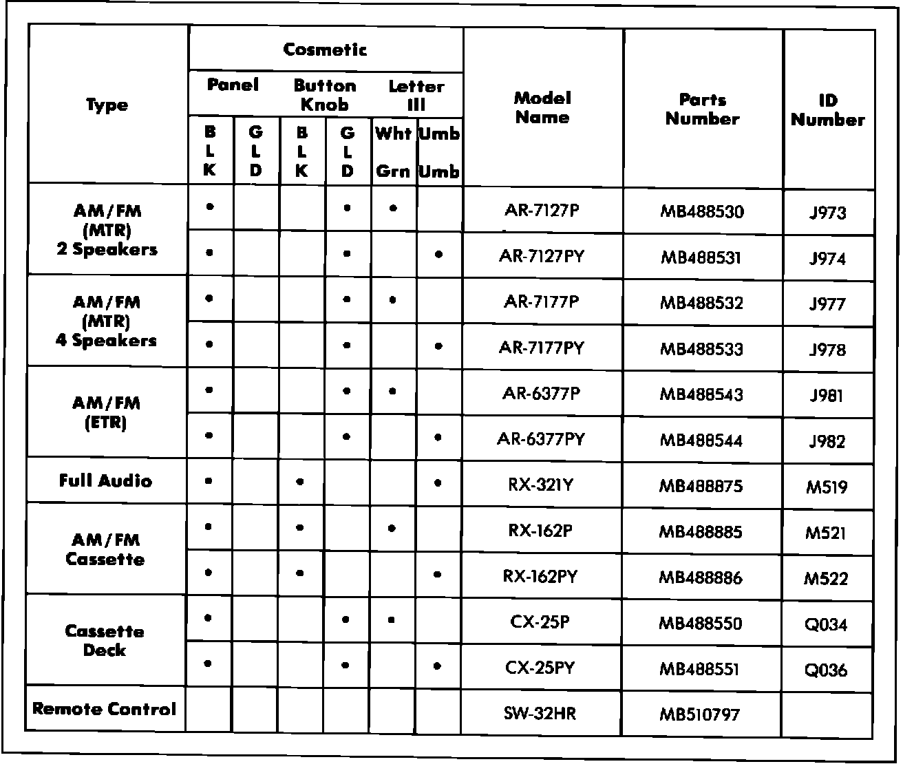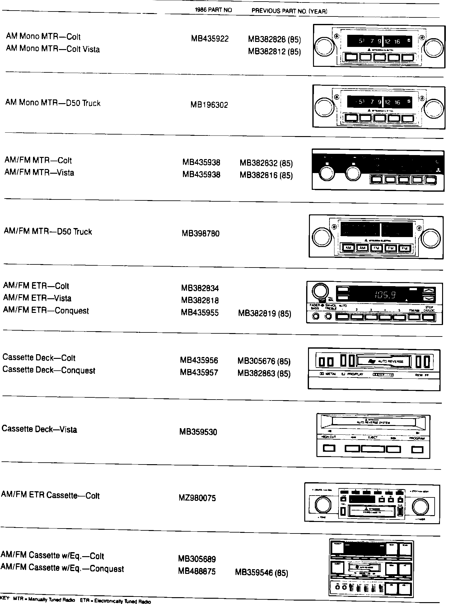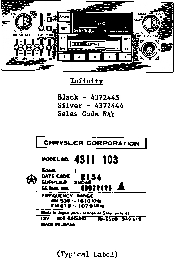 The above decals will serve to further help identify the Mitsubishi built "Ultimate Sound" and "Infinity" radios. Use the "model number" from the label on the EMCR.
