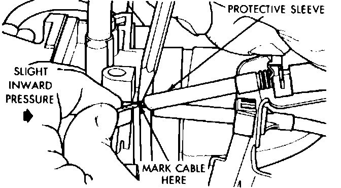 3. Pull core wire away from servo. There should be a .24 inch (6 mm) gap between mark on core wire and the protective sleeve.