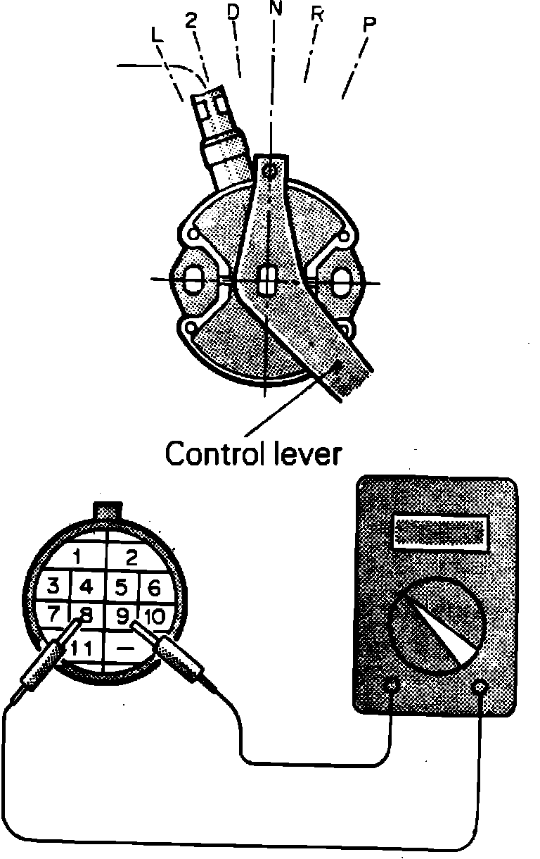 3. Continuity should exist with selector lever in P and N position, but should not exist with selector lever in R position.