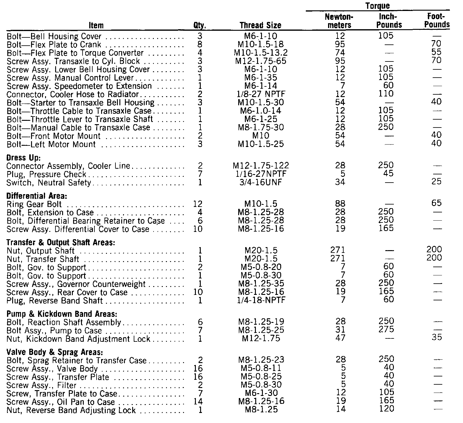 Torque Specifications