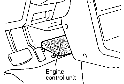 The electronic (MPI) control unit is located center of the vehicle, under the dash and behind the center console.