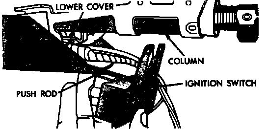 4. Remove two ignition switch mounting screws and permit switch and pushrod to drop below column jacket.