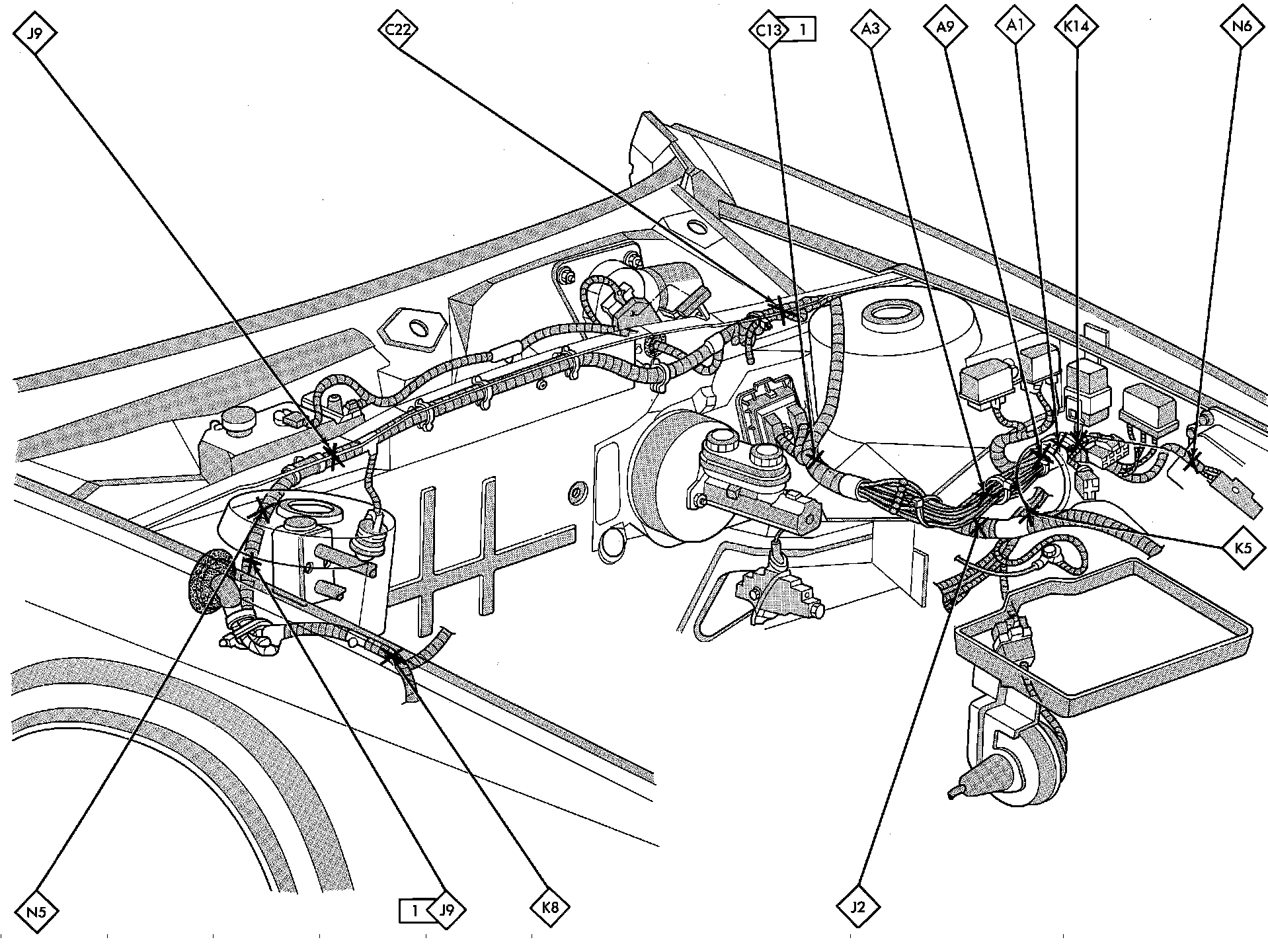 Splice Locations. Engine Compartment: