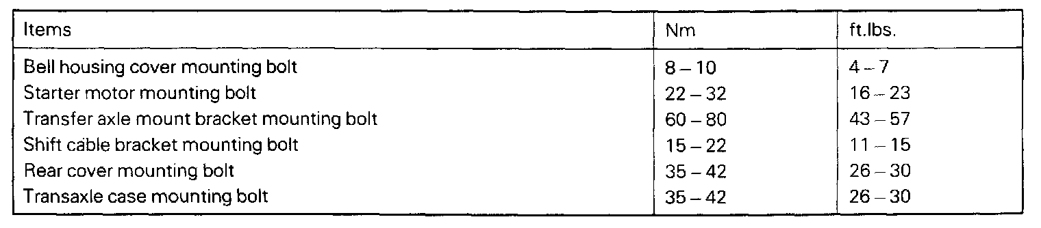 Torque Specifications, Transaxle.: