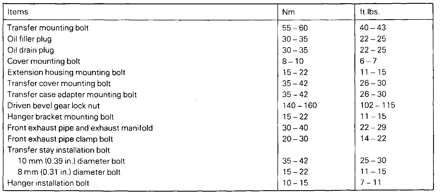 Torque Specifications, Transfer.: