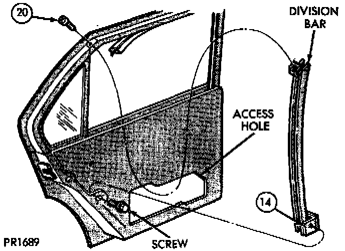6. Disengage the division bar from both the movable and fixed glass and remove through large access hole.