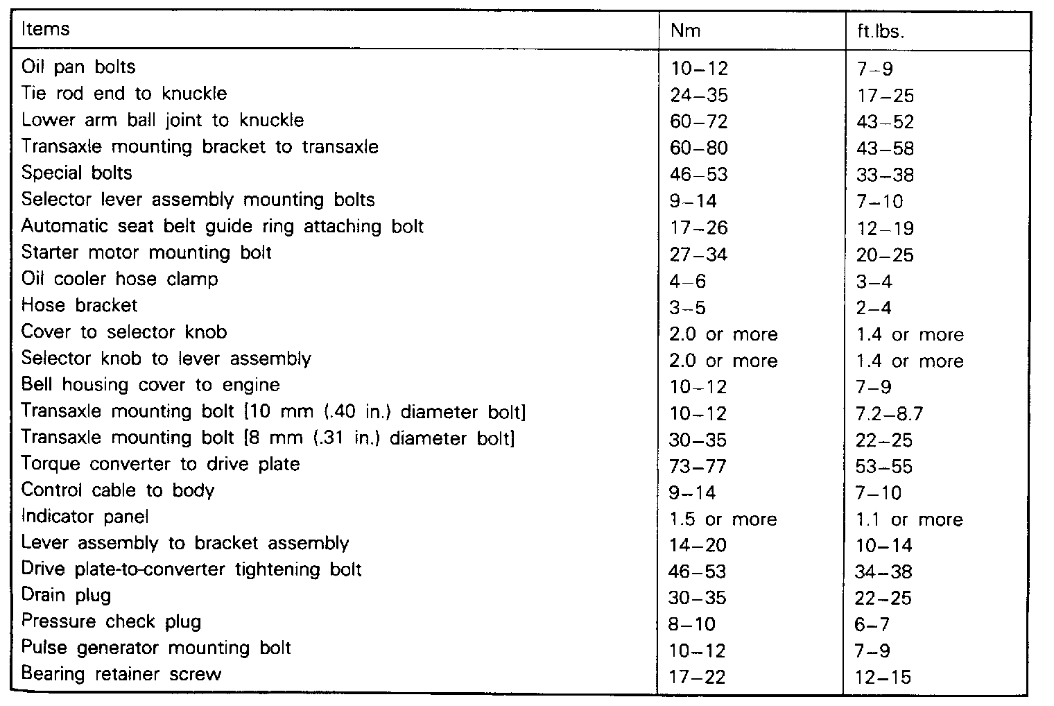 Torque Specifications: