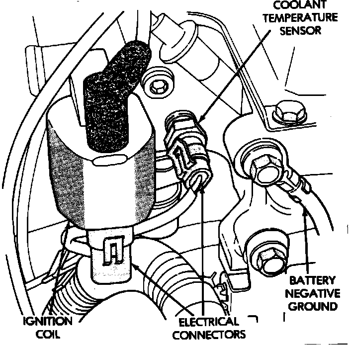 14. Check that the coolant temperature sensor's 2-way electrical connection is securely attached.