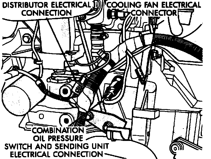 Distributor, Oil Pressure Switch, And Radiator Cooling Fan Electrical Connections: