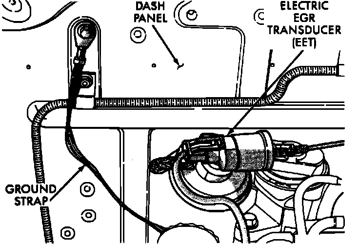24. Check that the engine ground strap is attached securely at the intake manifold and the dash panel.