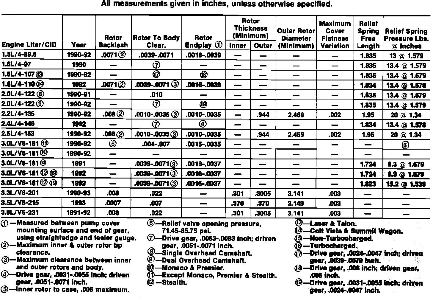 Oil Pump Specifications: