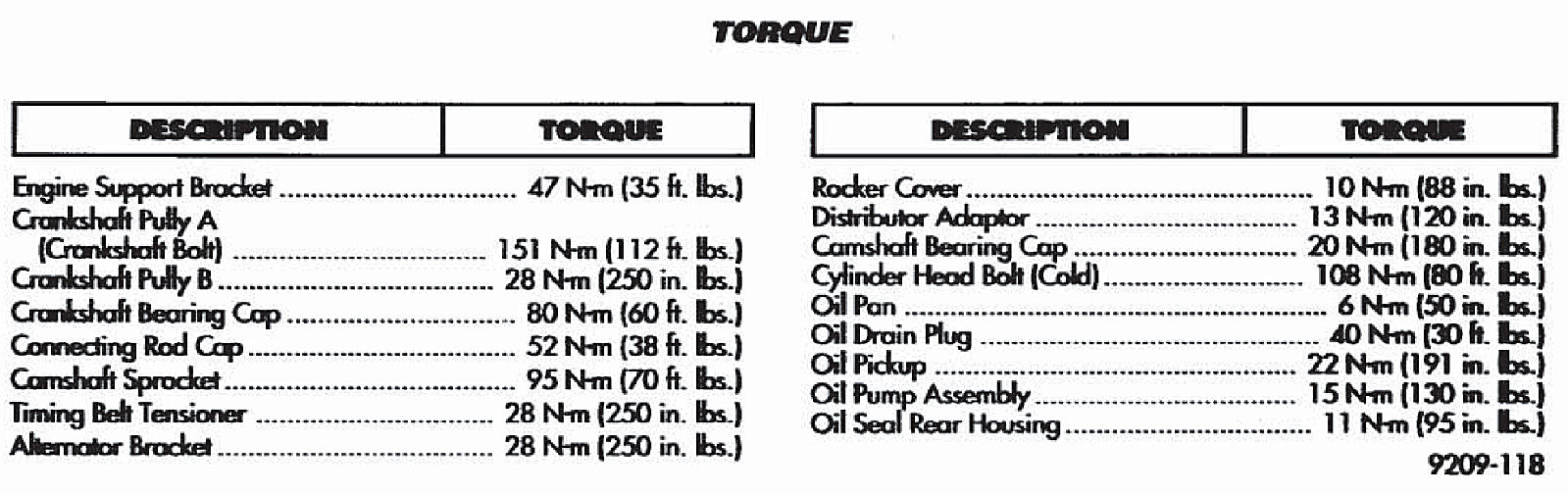Tightening Specifications