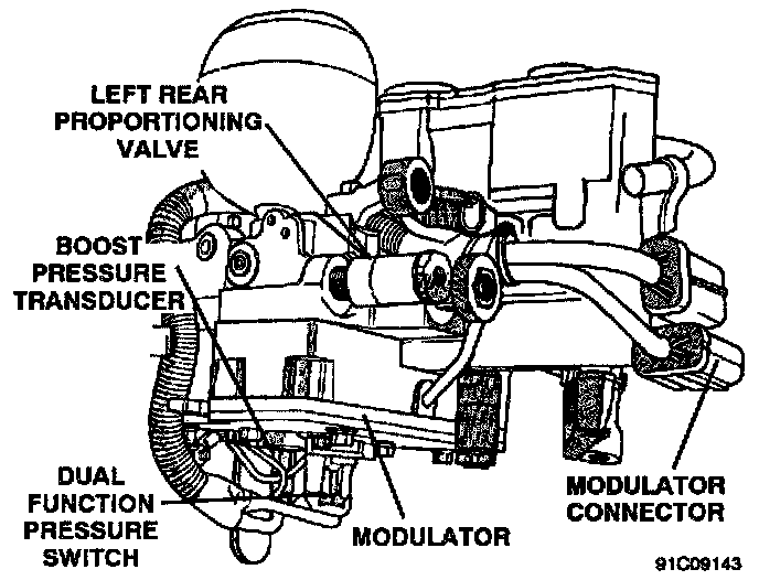 ABS components and connectors can be located by referring to the illustrations provided below.