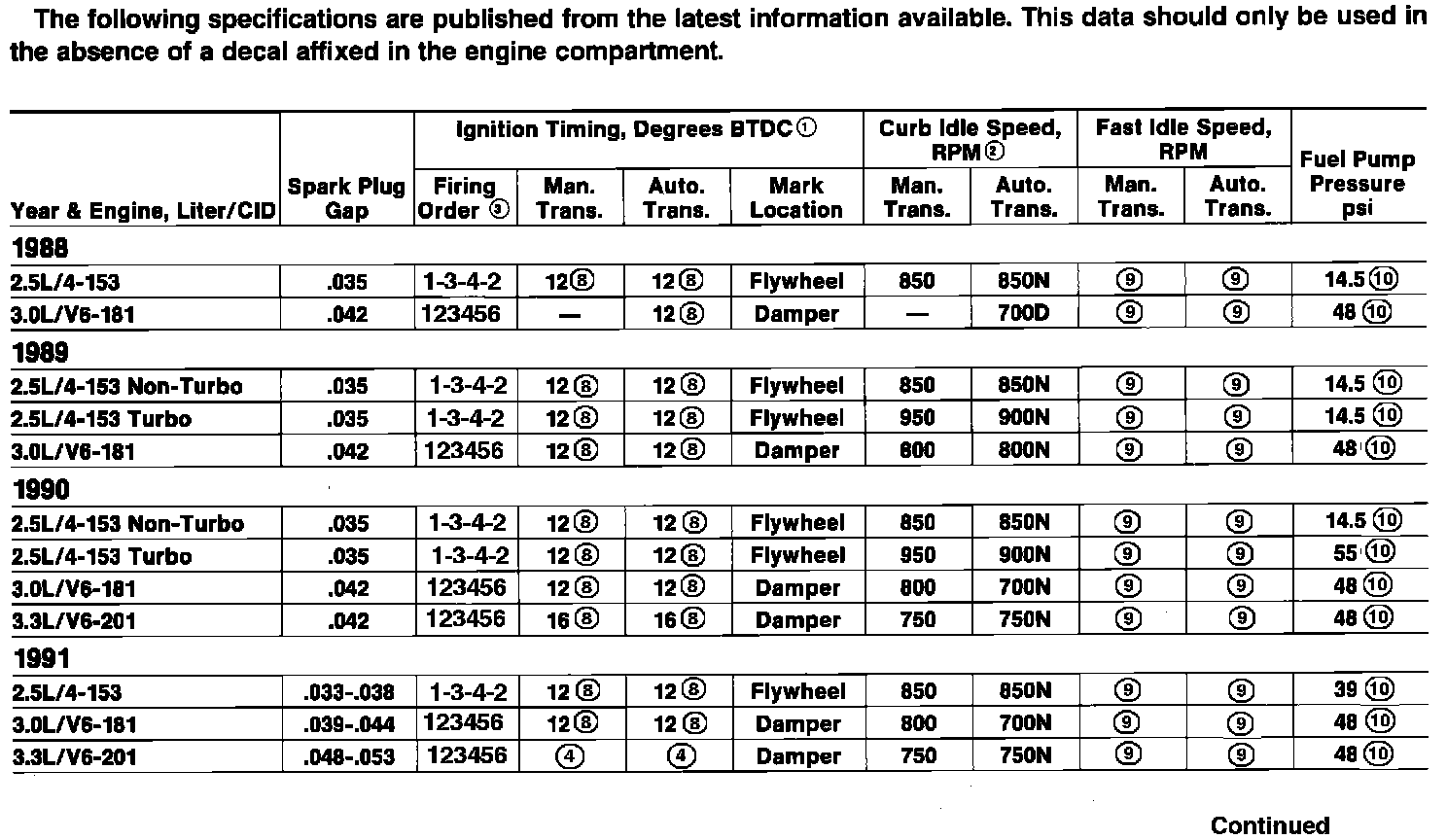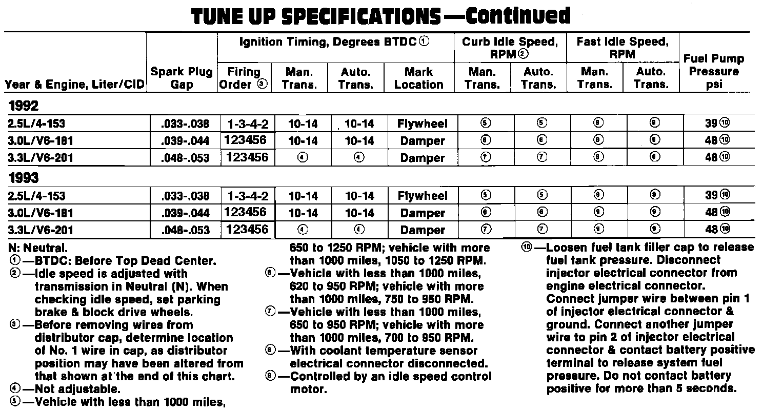 Tune Up Specifications