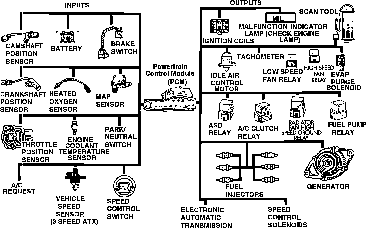 The PCM then actuates various output devices to achieve the best compromise between power, fuel consumption, and emissions.