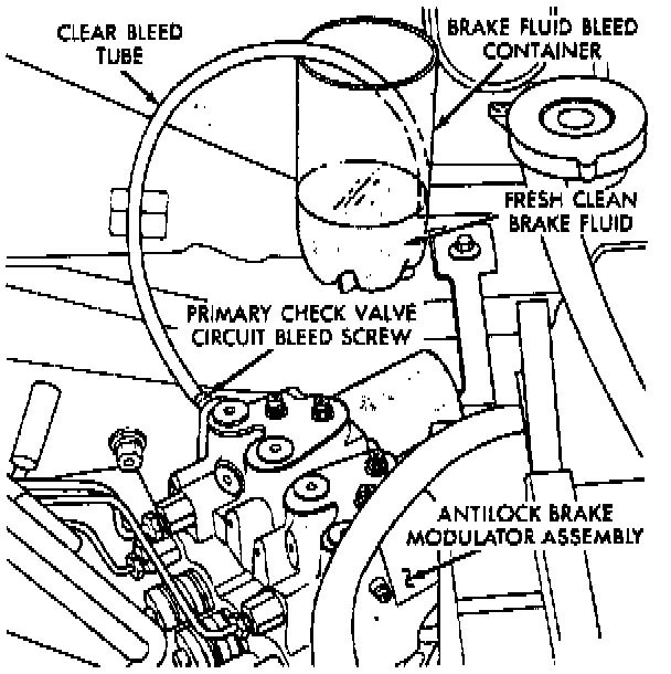 8. Bleed modulator primary check valve circuit, then secondary check valve circuit as follows: