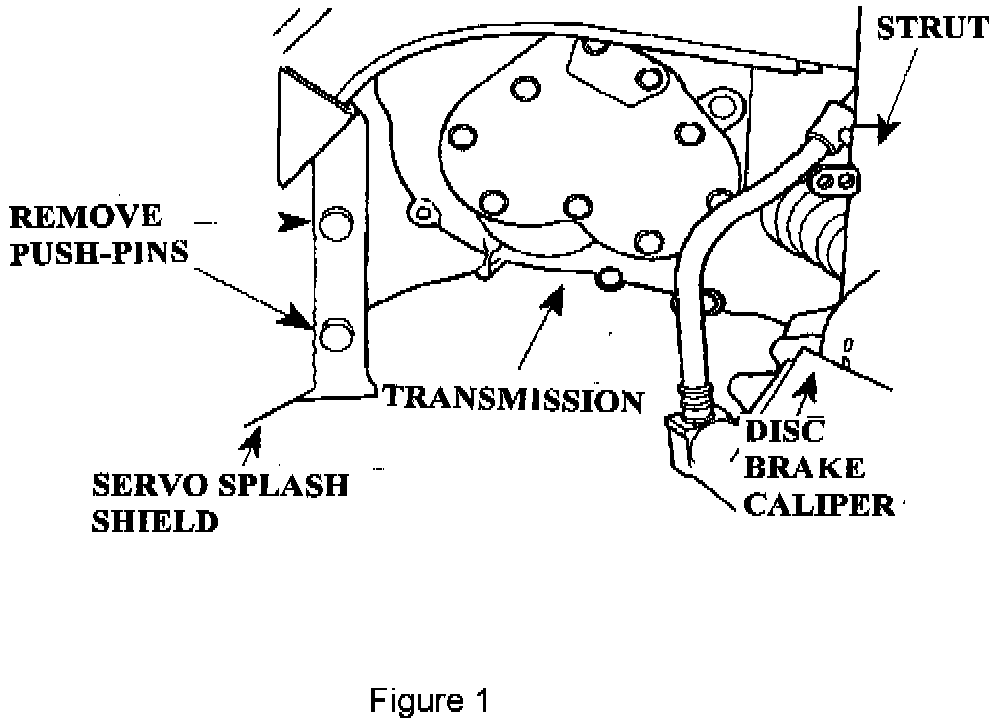 3. Remove the push pins connecting the inner fender shield to the speed control splash shield. Figure 1