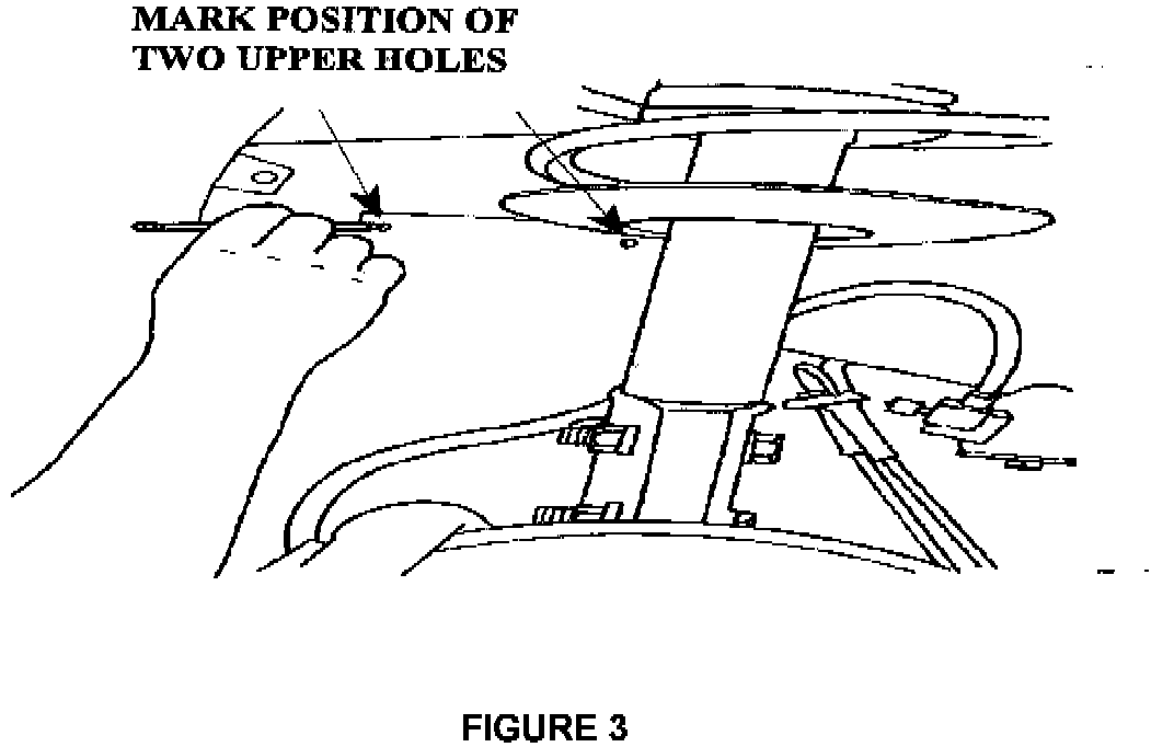 5. Hold the shield against the frame rail. Using the shield as a template, mark the position of the two upper holes. Figure 3