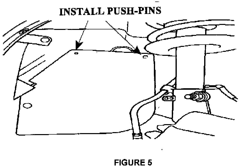 7. Install the two push pins through the shield into the 1/4" holes drilled in step 6. Figure 5