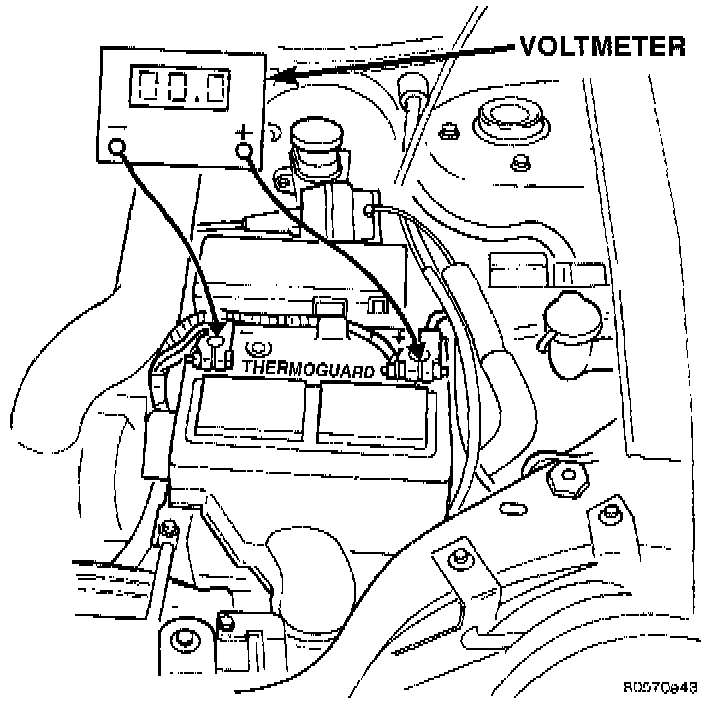 a. Touch the positive lead of voltmeter directly to battery negative POST.