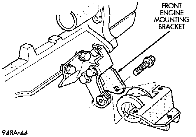 b. Install the front engine mount bolt through the insulator and front crossmember mounting bracket.