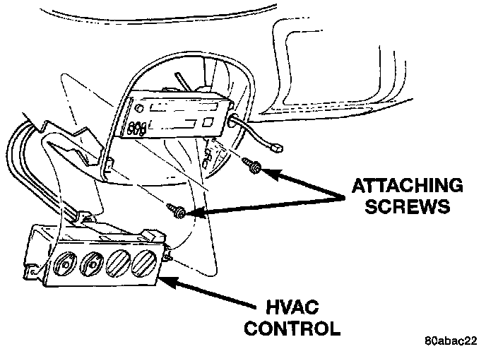 2. Remove the HVAC control attaching screws. Pull the control out to disconnect two electrical connectors and two control cables.