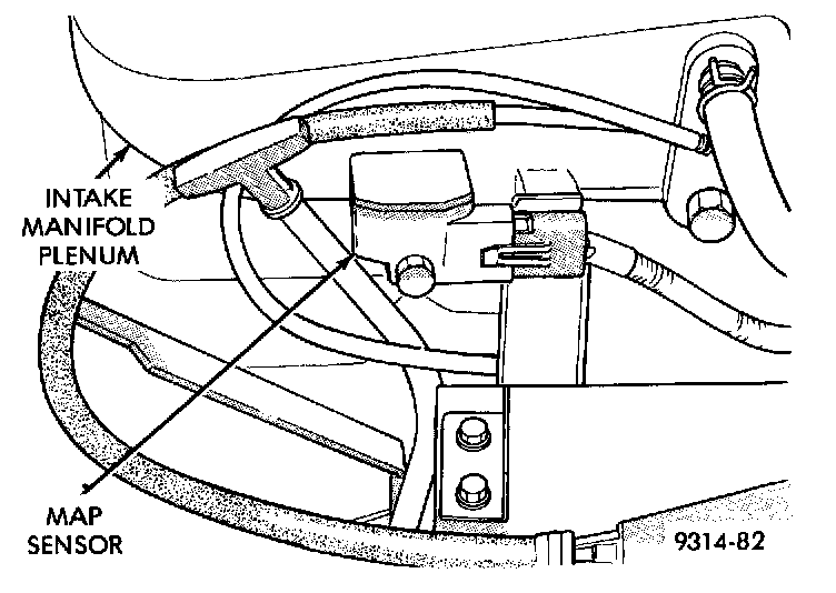 The MAP sensor threads into the left side of the intake manifold plenum.