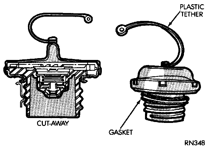 A pressure-vacuum relief cap seals the fuel tank. Tightening the cap on the fuel filler tube forms a seal between them. The relief valves in the cap are a safety feature. They prevent possible excessive pressure or vacuum in the tank. Excessive fuel tank pressure could be caused by a malfunction in the system or damage to the vent lines.