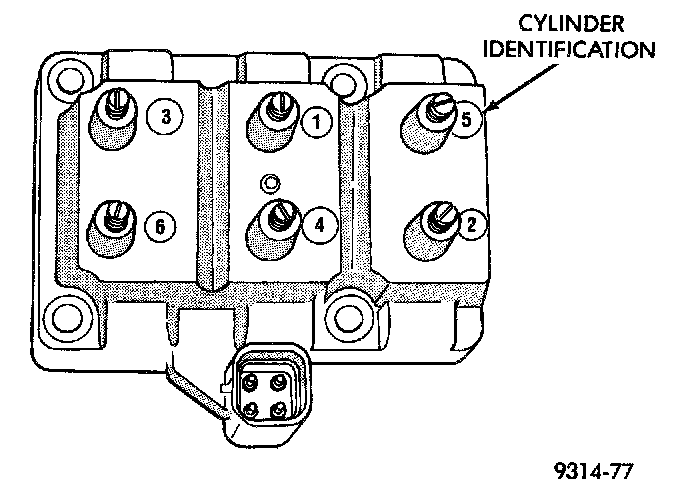 Coil number one fires cylinders 1 and 4, coil number two fires cylinders 2 and 5, and coil number three fires cylinders 3 and 6.