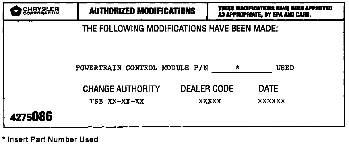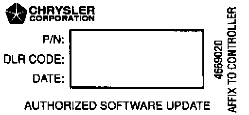 9. Type the necessary information on the "Authorized Software Update Label" pin 04669020. Attach the label to the PCM and cover the label with the clear plastic overlay.