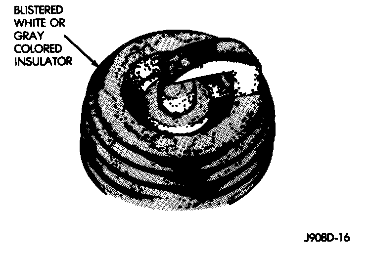 Overheating is indicated by a white or gray center electrode insulator that also appears blistered. The increase in electrode gap will be considerably in excess of 0.001 in. per 1000 miles of operation. This suggests that a plug with a cooler heat range rating should be used. Over advanced ignition timing, detonation and cooling system malfunctions also can cause spark plug overheating. Also check for lean air-fuel mixture. Check the torque value of the plugs to ensure good plug-engine seat contact.