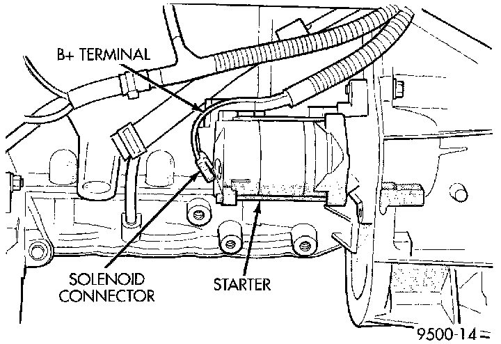 - Disconnect solenoid and B+ wires from starter terminals.