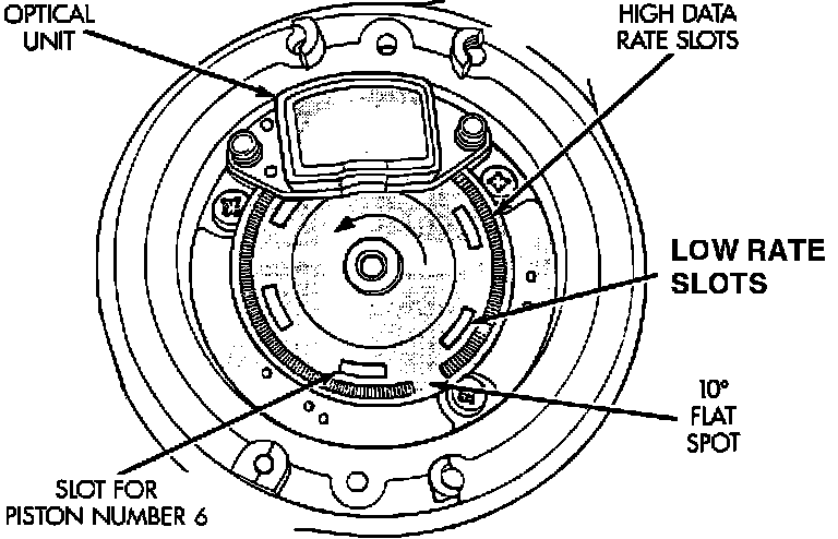 The outer or "high data rate", slots pass through the corresponding sensor at a rate of 1 slot per 2 degrees of crankshaft rotation.
