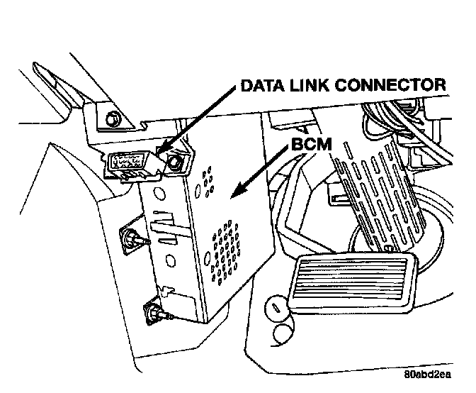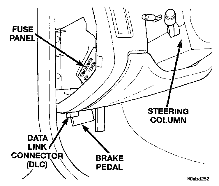 The data link connector is located inside the vehicle, below instrument panel next to the center column.