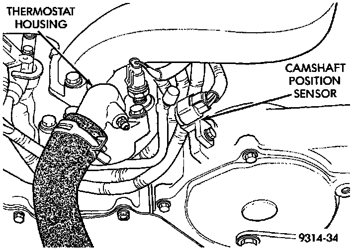 The camshaft position sensor is mounted in the front of the timing case cover.