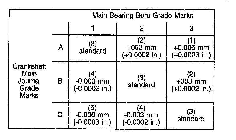 Main Bearing Selection Chart: