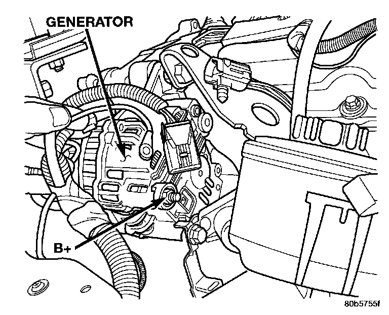 10. Remove the B+ terminal nut and wire.