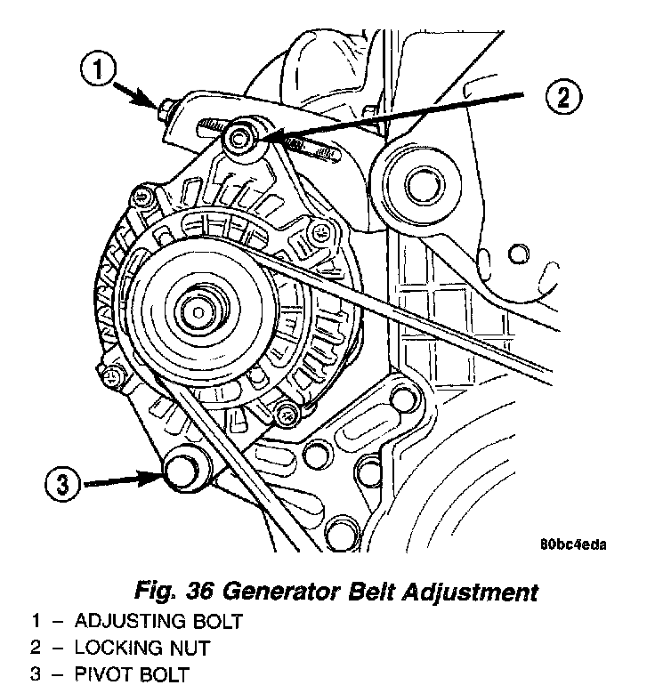1. Install belt (Fig. 34) over all pulleys except for the power steering pump pulley.